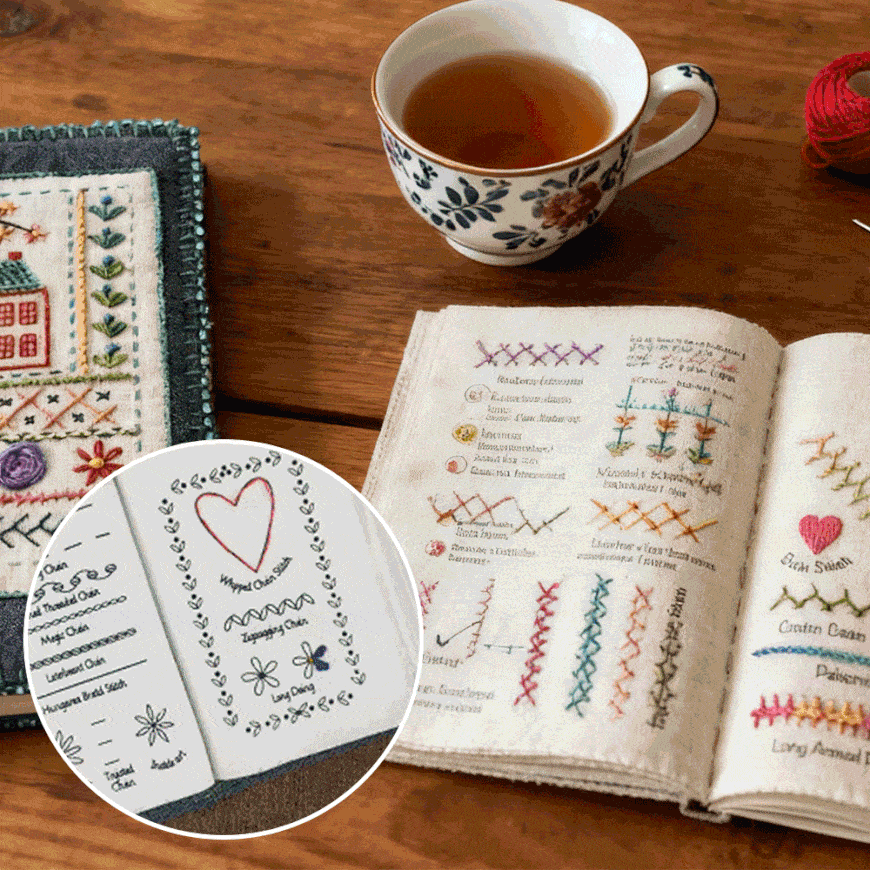 Öffnen Sie Ihr Heft, wählen Sie Ihr Motiv, sticken Sie.